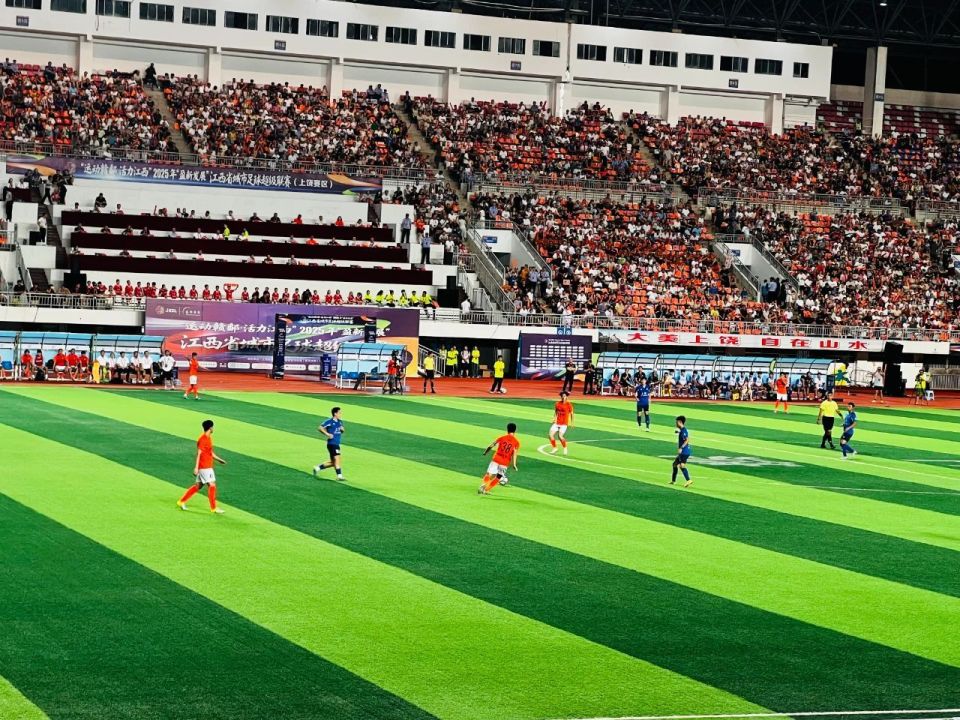“上饶必胜!”“景德镇加油!”的呐喊声贯穿整场比赛。每一次激烈对抗都牵动着球迷心弦。“第一次在现场看‘赣超’。之前都是在电视上看球赛,现场观赛的氛围感更强。”来自上饶玉山的球迷黄智雄告诉记者。